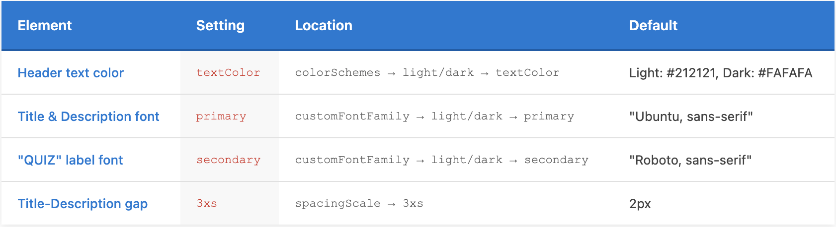 - Quiz Title color