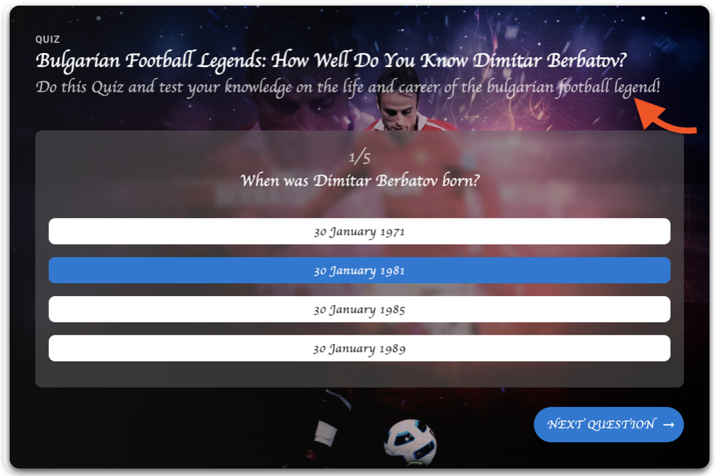- Description - Supporting text that explains what the quiz is about