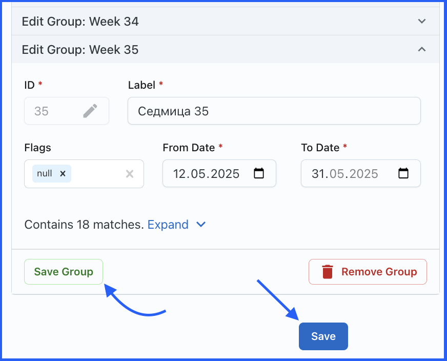 Make sure to click on 'Save Group' to save your desired group/s and then click on 'Save' to update your leaderboard