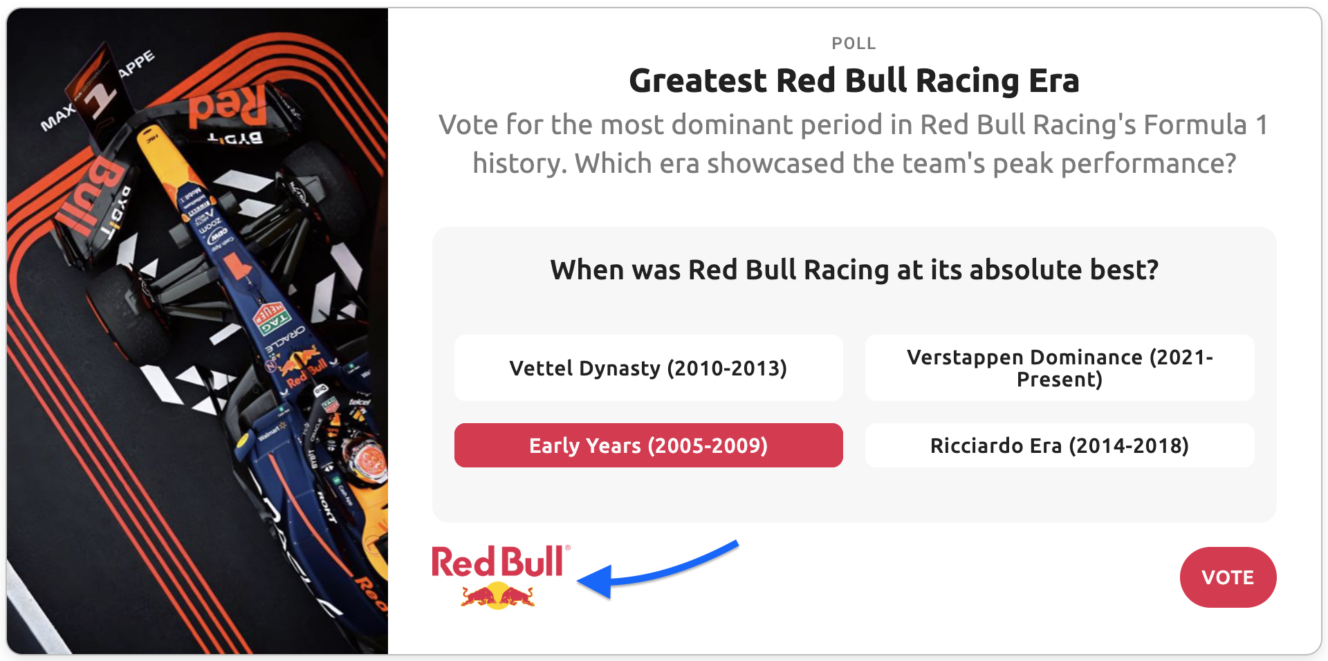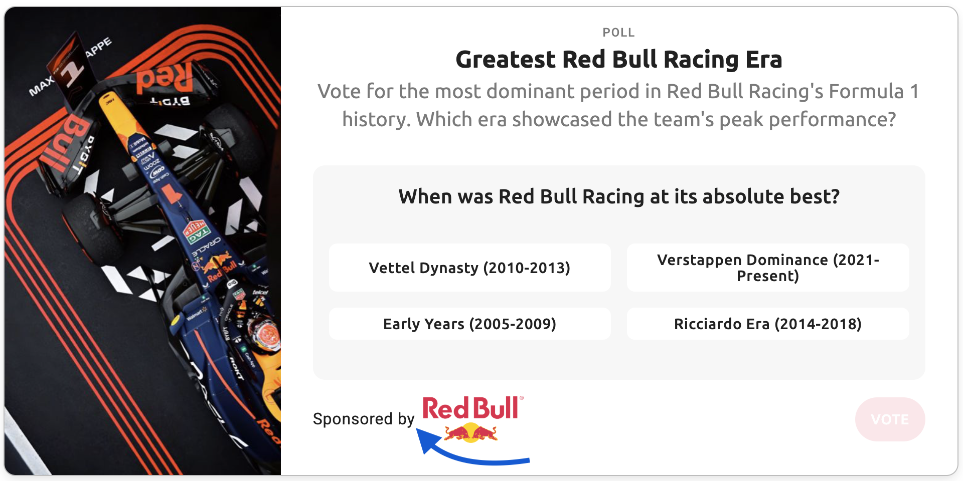 Example: Poll Widget displaying "Sponsored by" text before the Red Bull logo