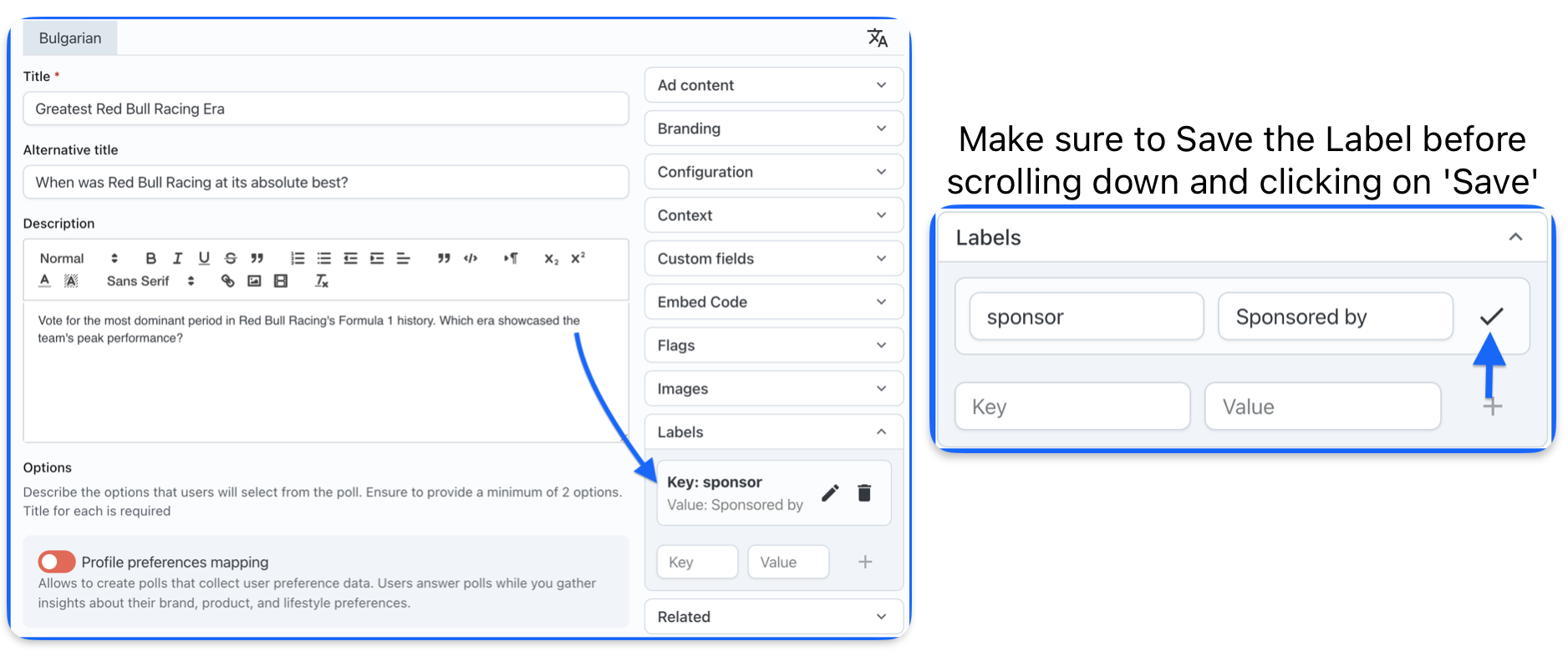 - In the Value field, enter your desired text (e.g., "Sponsored by", "Presented by", "Powered by")