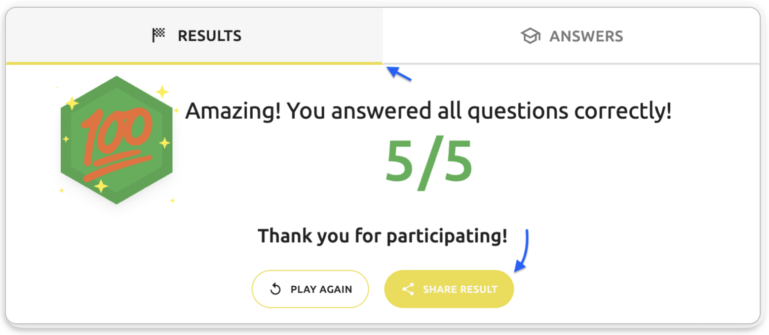 • Share Result button - The button on the results screen that encourages users to share their quiz results