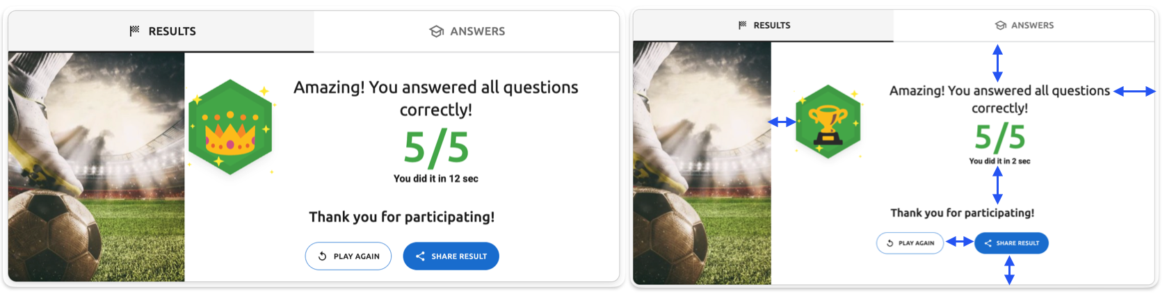 - Footer gap (Results screen) - The spacing between the "Thank you for participating!" text and the action buttons, and between the buttons and the branding logo