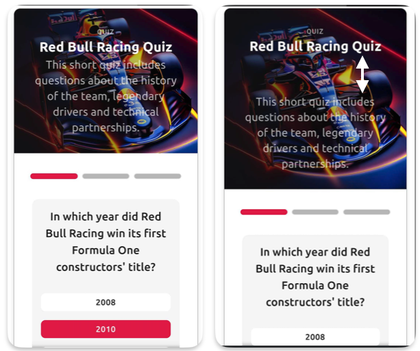 - Progress bar/stepper vertical padding - The top and bottom padding around the progress indicator showing quiz completion