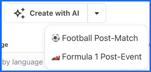 Click the Create with AI button to open the dropdown menu. Select Formula 1 Post-Event