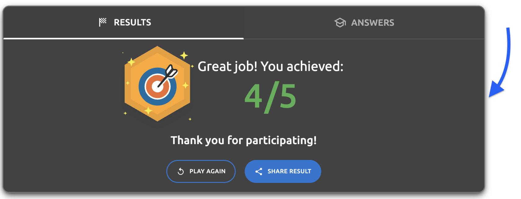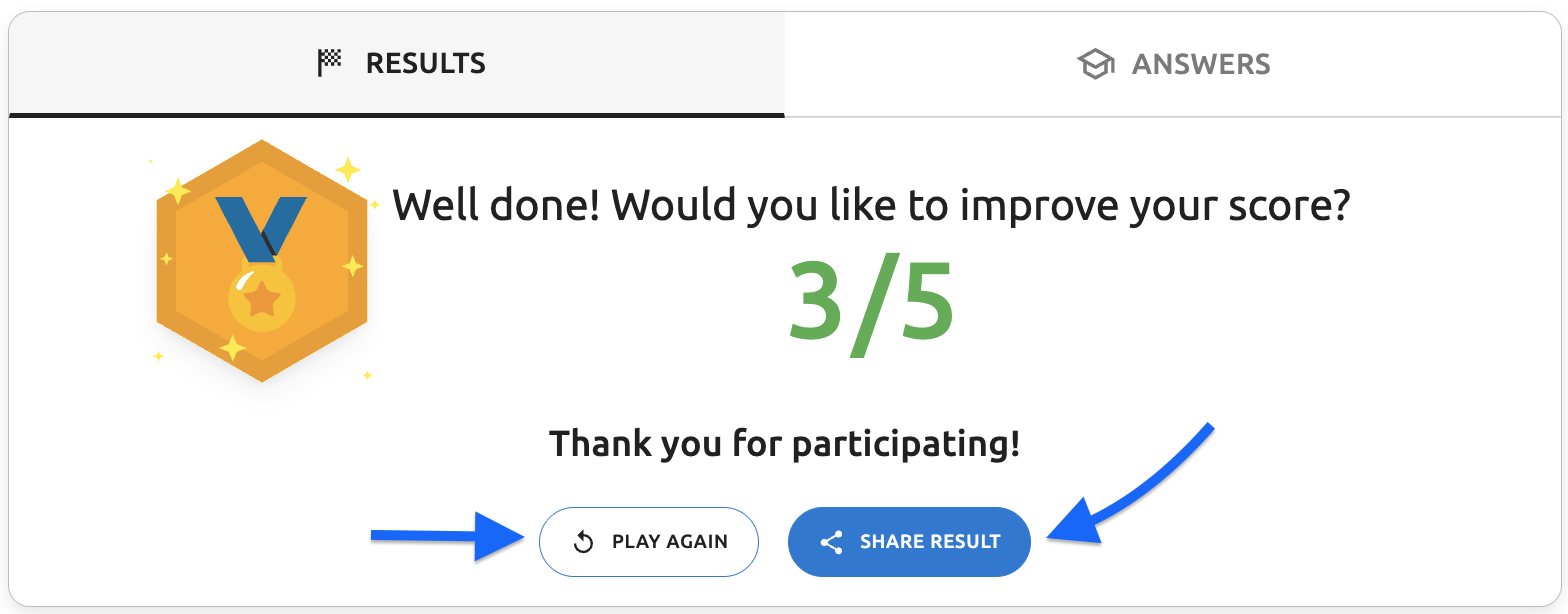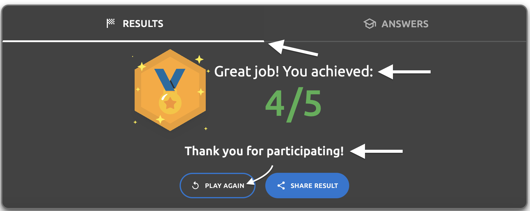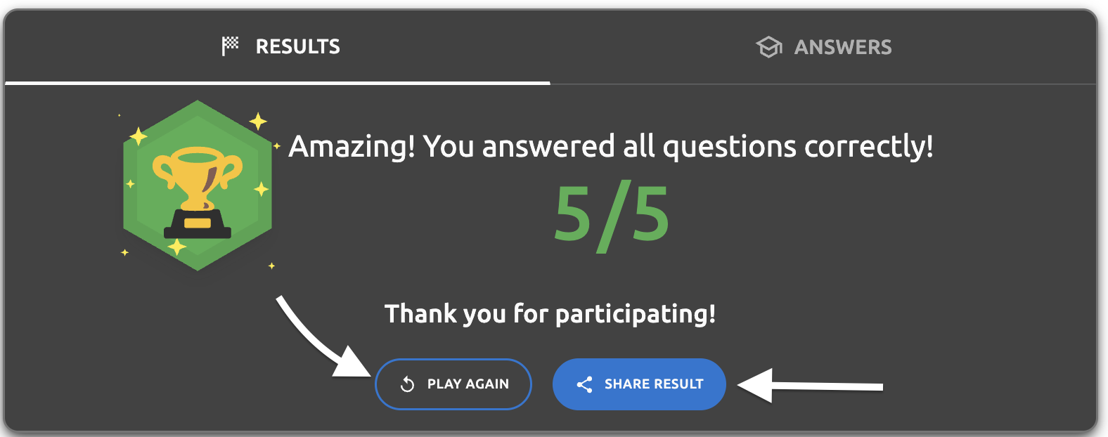 - Final results screen - "Thank you for participating!" text - The thank you message displayed on the results page