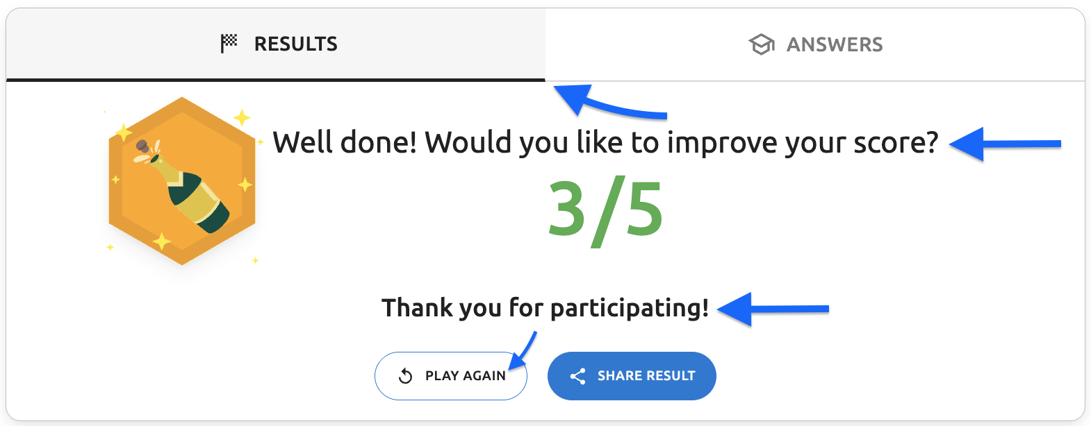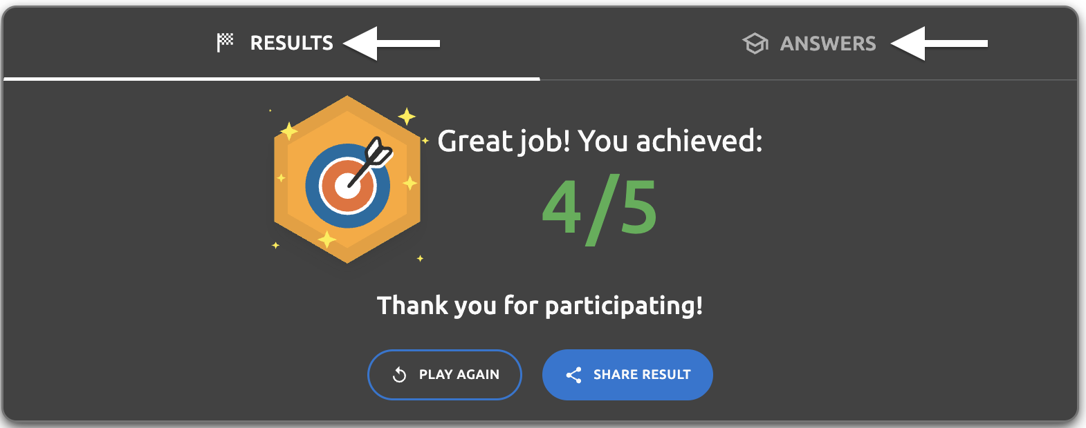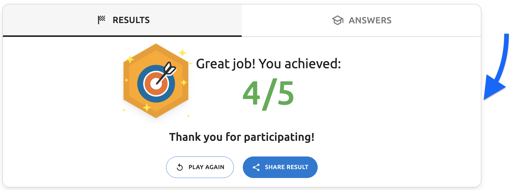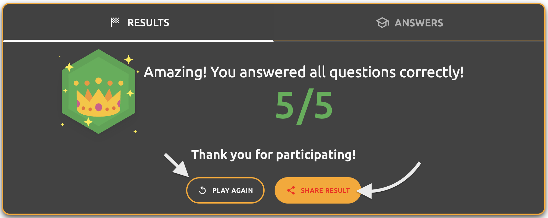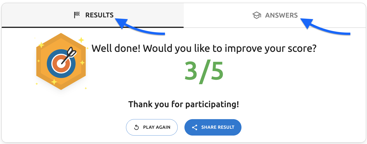 - Final results screen - "Thank you for participating!" text - The thank you message displayed on the results page