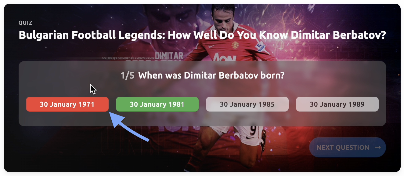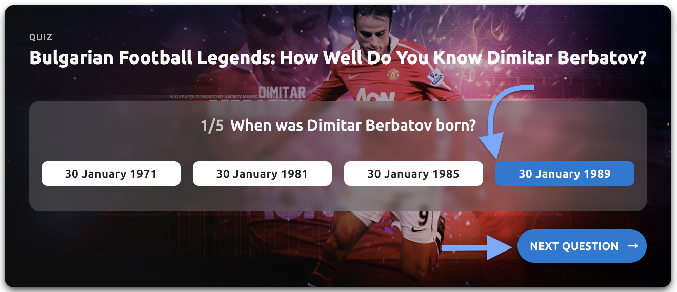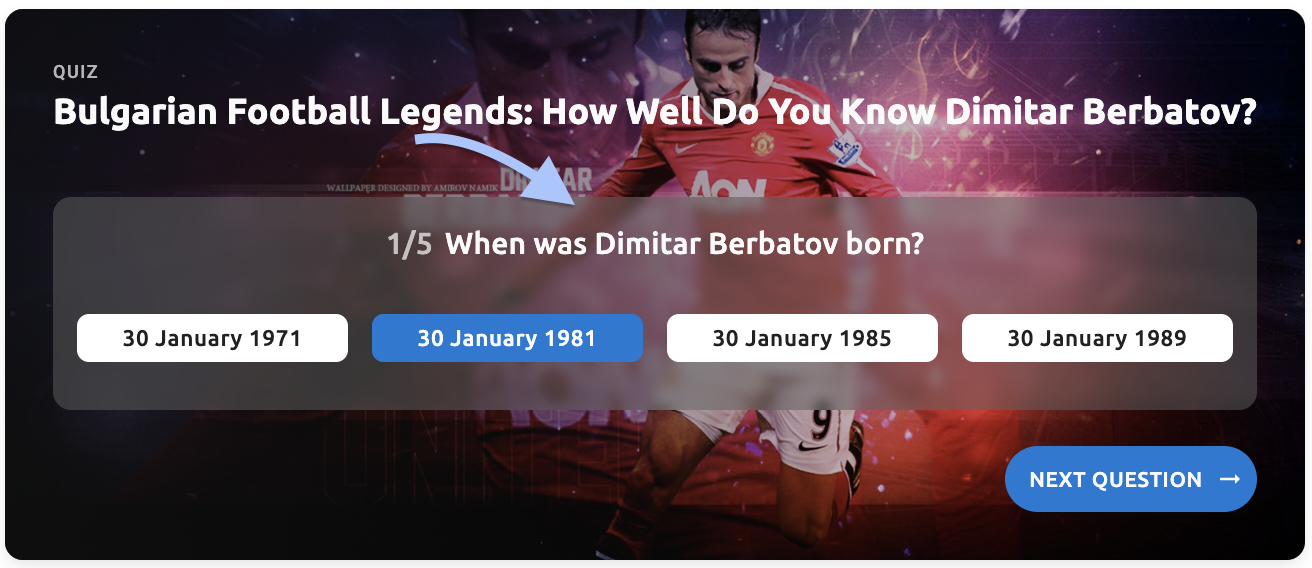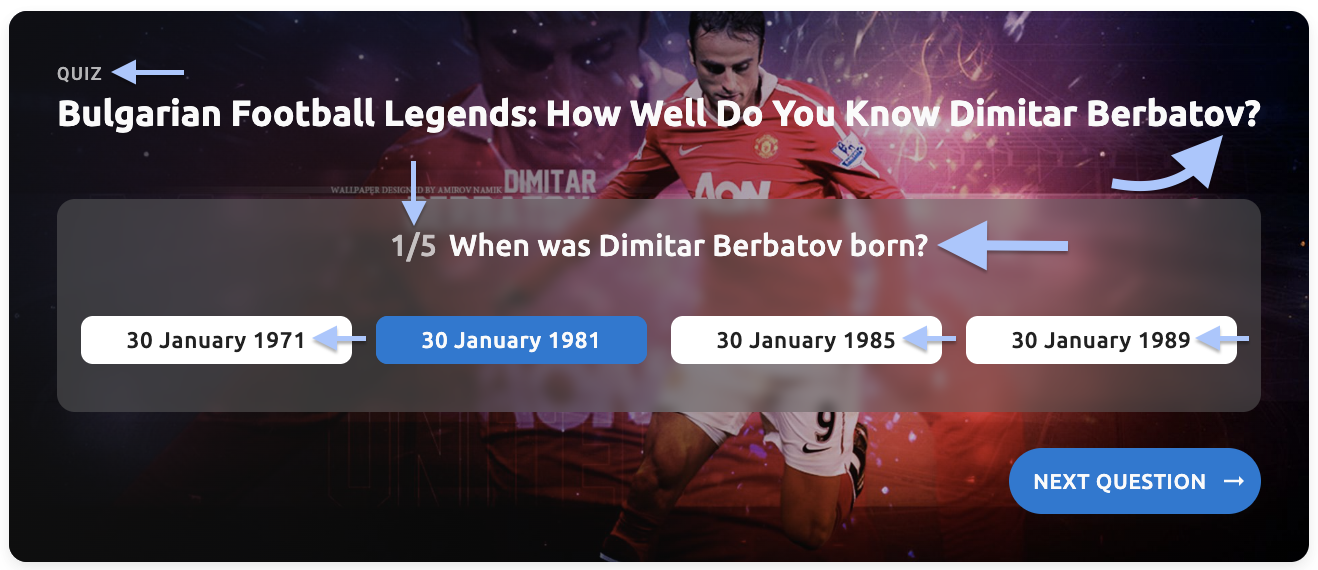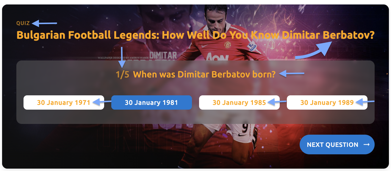 - Quiz title - The primary title text of your quiz (e.g., "Bulgarian Football Legends: How Well Do You Know Dimitar Berbatov?")