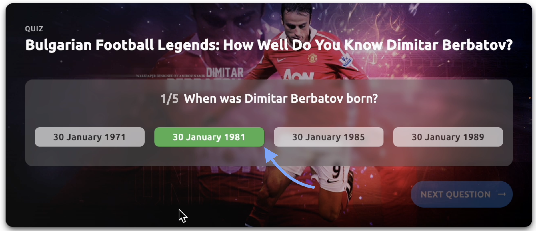 - Question text - The main question text displayed to users (e.g., "When was Dimitar Berbatov born?", "When was Arthur Elias born?")