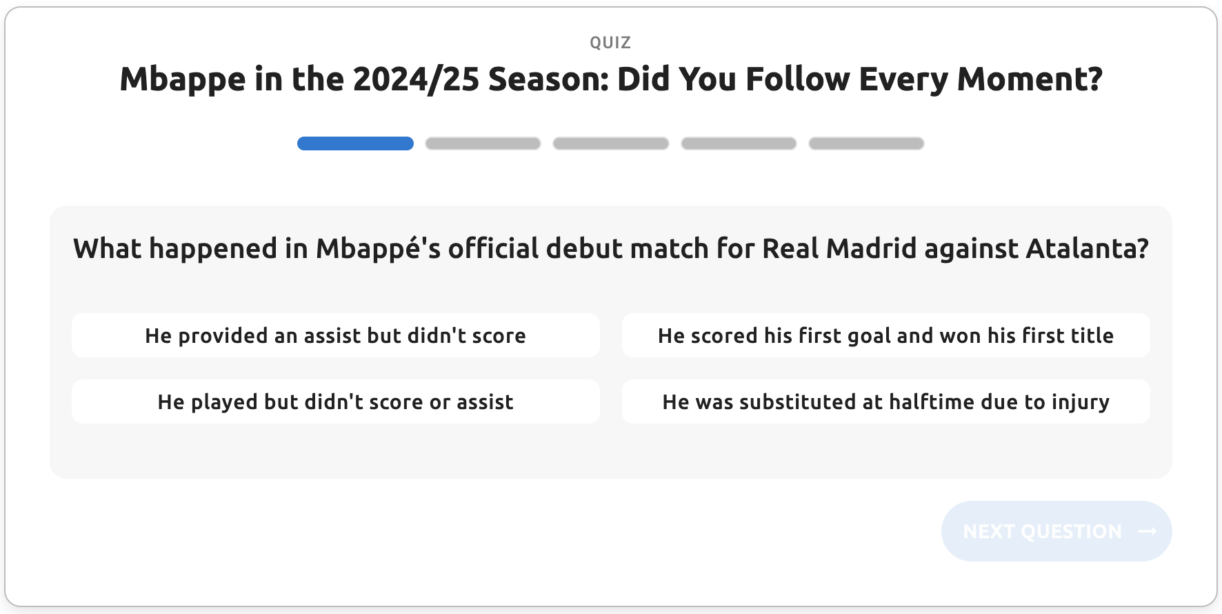 Our Quiz widget offers three different template layouts: Standard, Split and Overlay. The Standard template uses a card-based layout where you have flexibility in positioning your images.